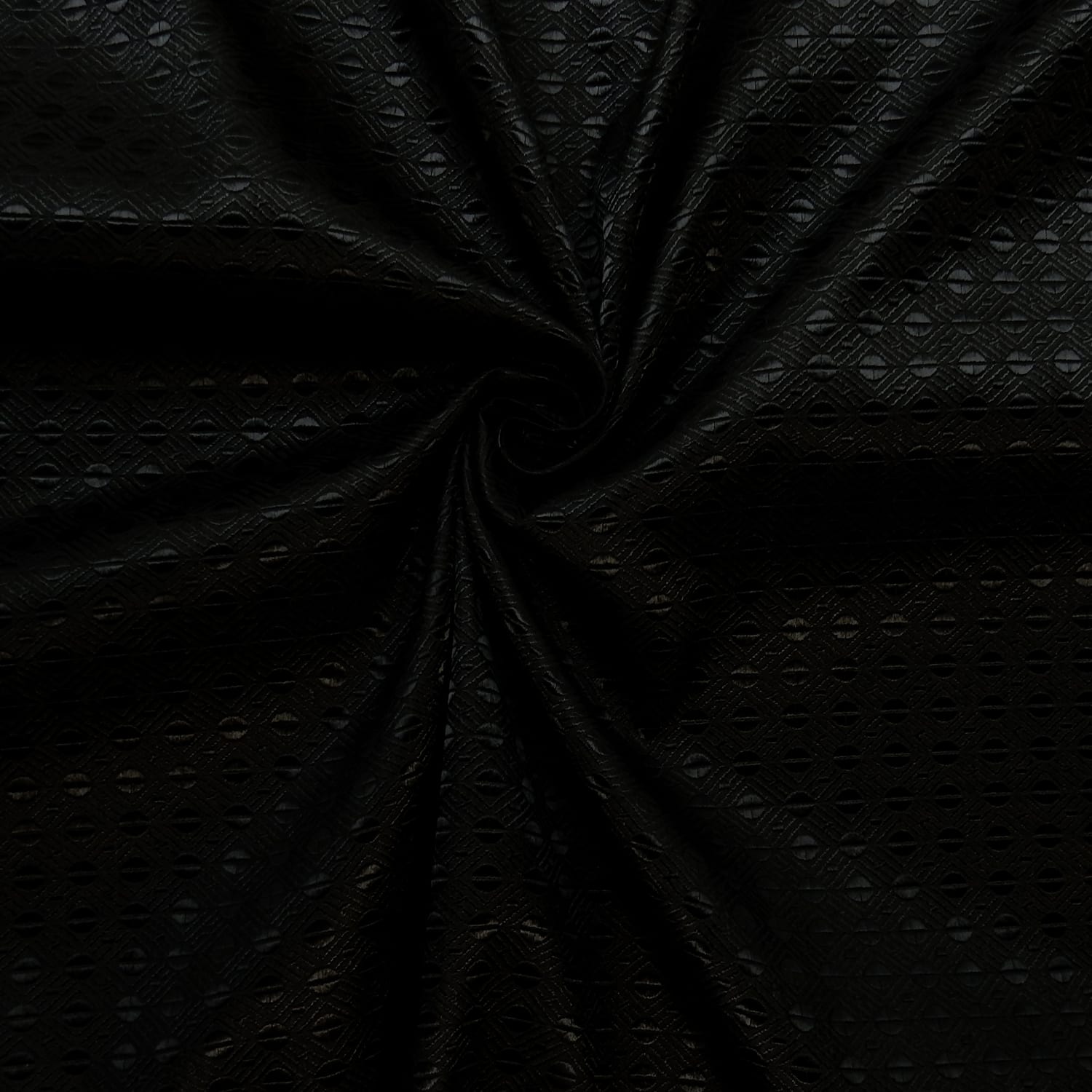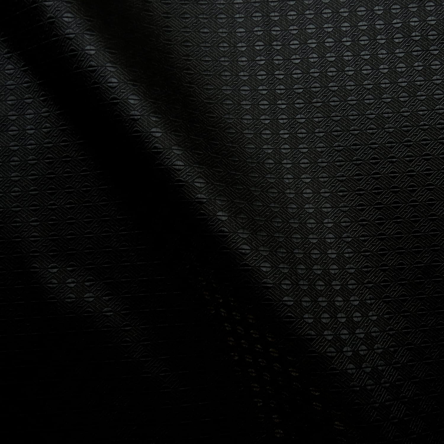 An exquisitely woven, black on black Diamond Brocade Fabric in a natural blend of silk and rayon, finished with an elegant soft shine. Brocade is a woven fabric which creates the appearance of having been embroidered.