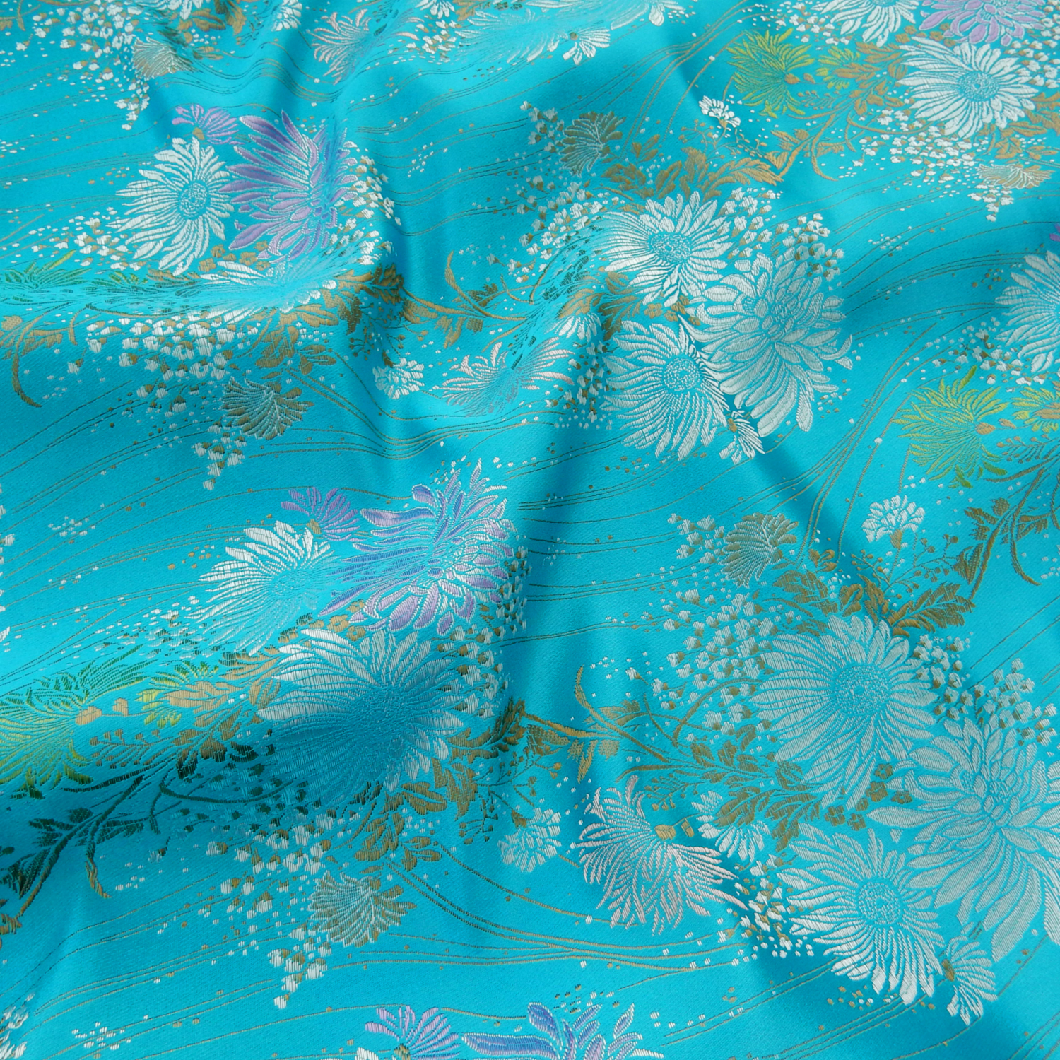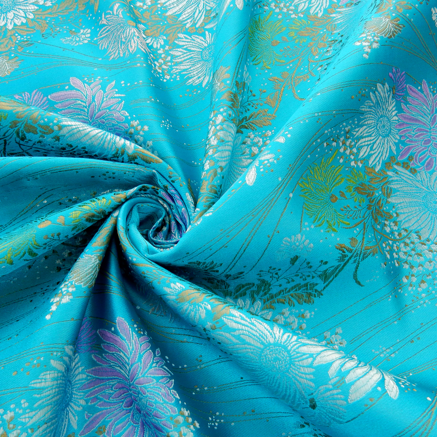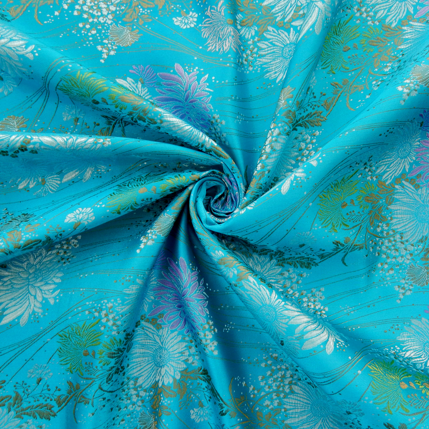 60″ Chinese Brocade Fabric Spring Turquoise, by the yard