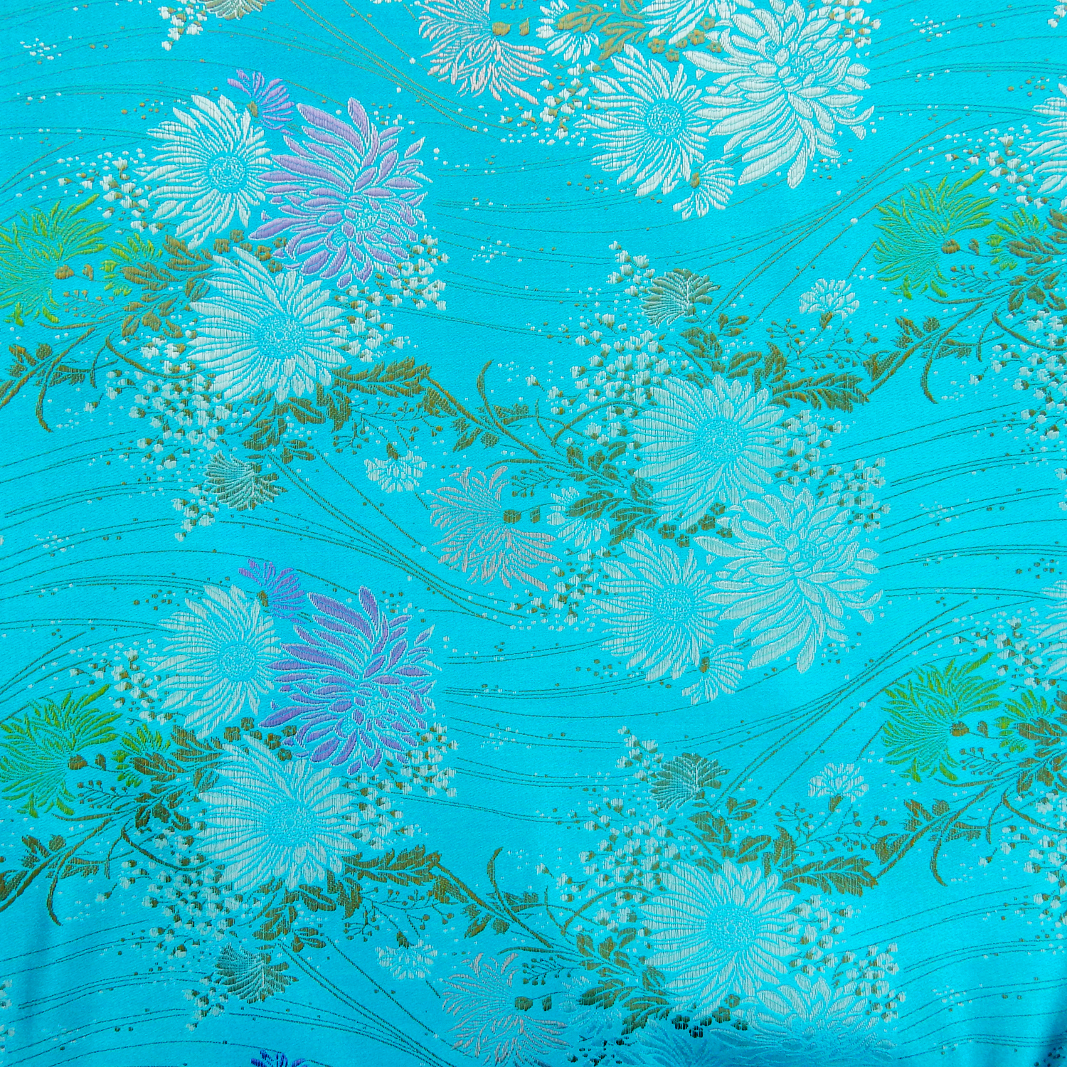 60″ Chinese Brocade Fabric Dogwood Turquoise 35 yard bolt