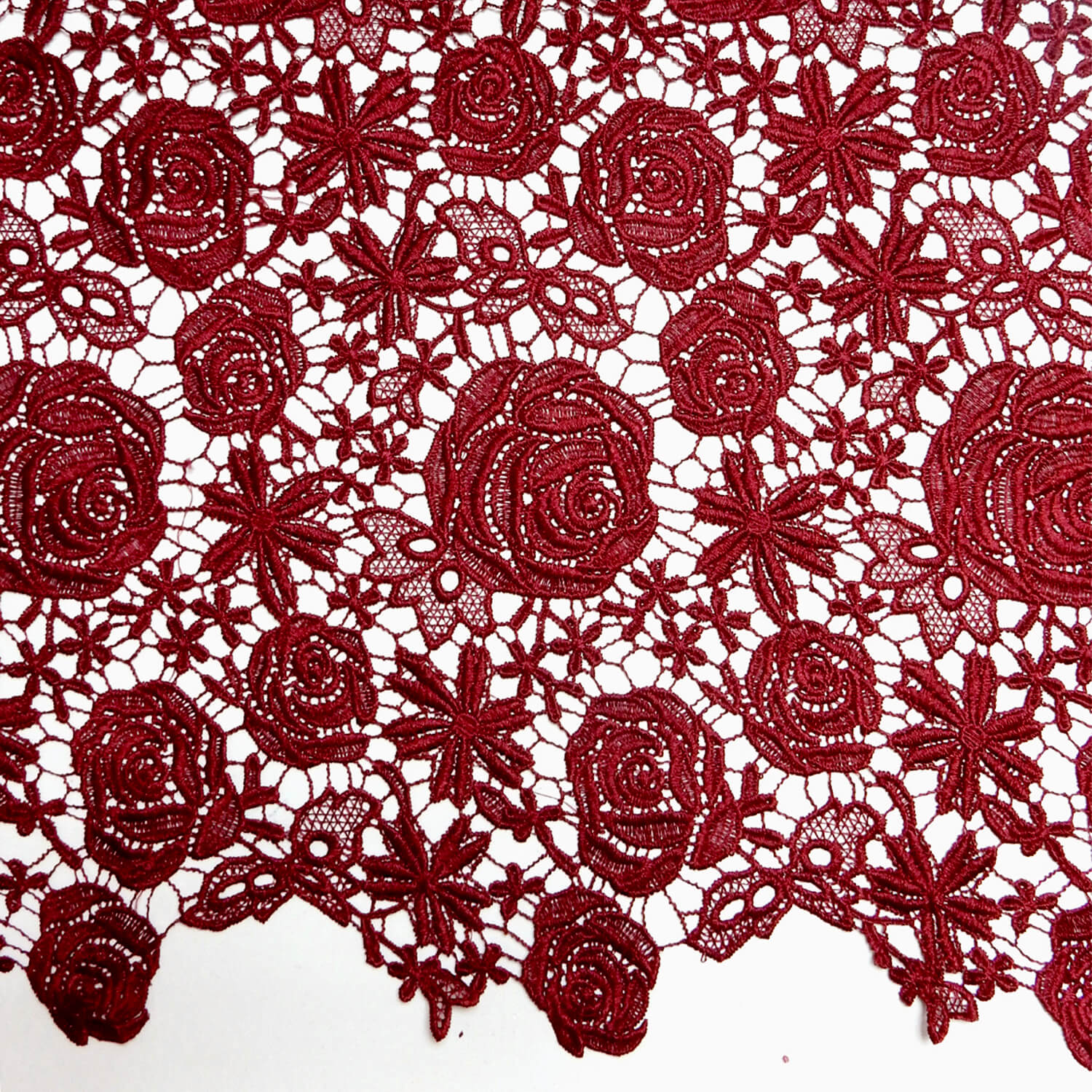 Rose Venice Lace Fabric Wine 15 yard bolt