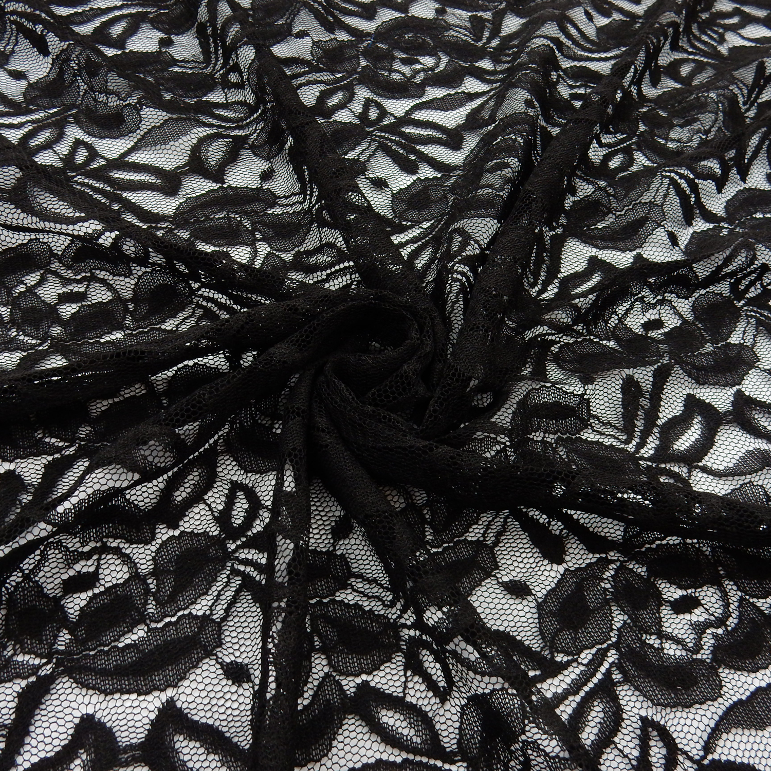 SALE Stretch Re-Embroidered Lace Fabric 5842 Black, by the yard