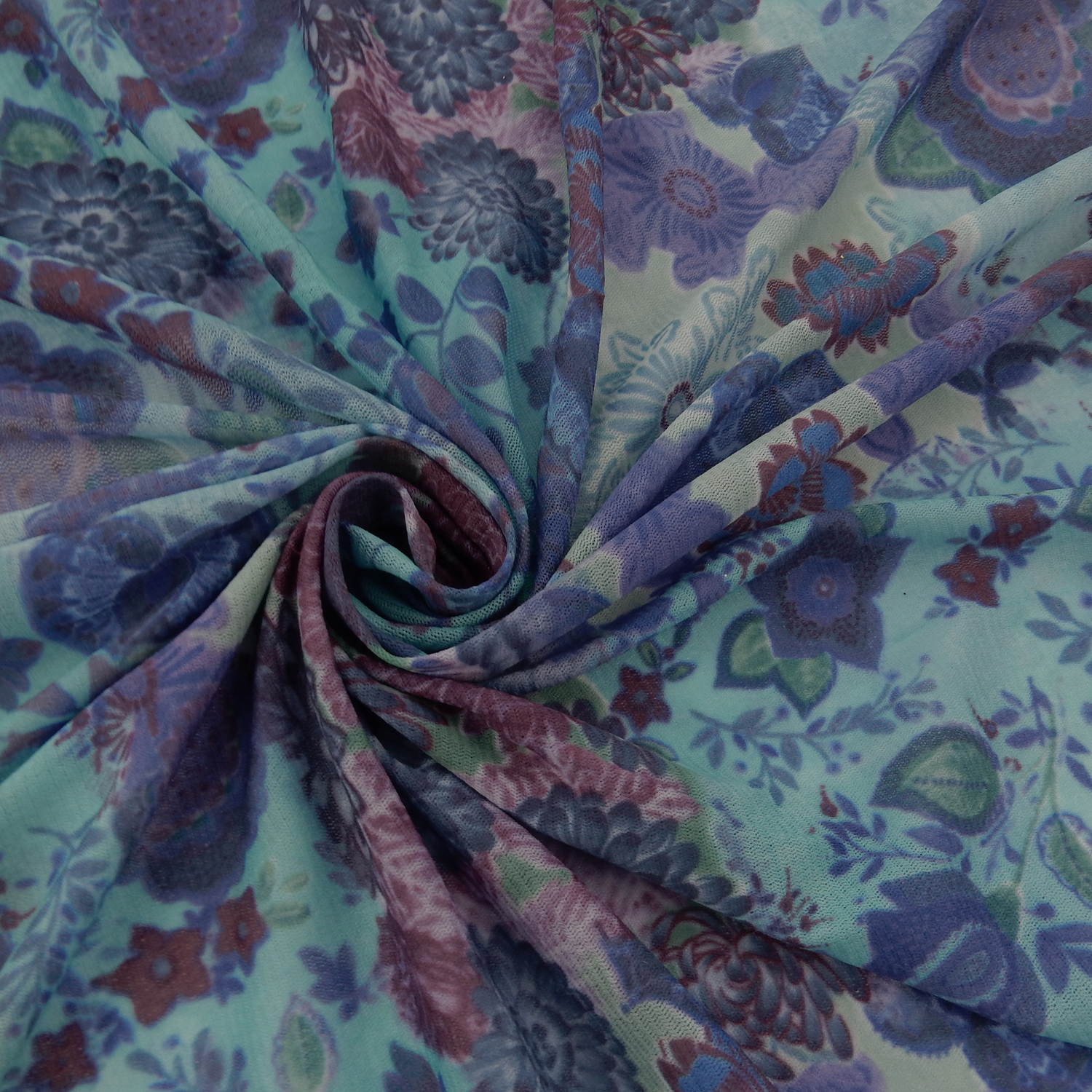 SALE Flower Printed Stretch Sheer Fabric 6714 Blue, by the yard