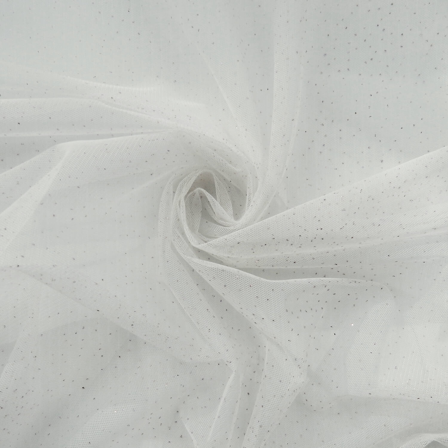 Sparkling lilac color holograms on a light dove gray color, 2-way Stretch Sheer Mesh Fabric, Approximately 16% 2-way stretch from selvage to selvage.
