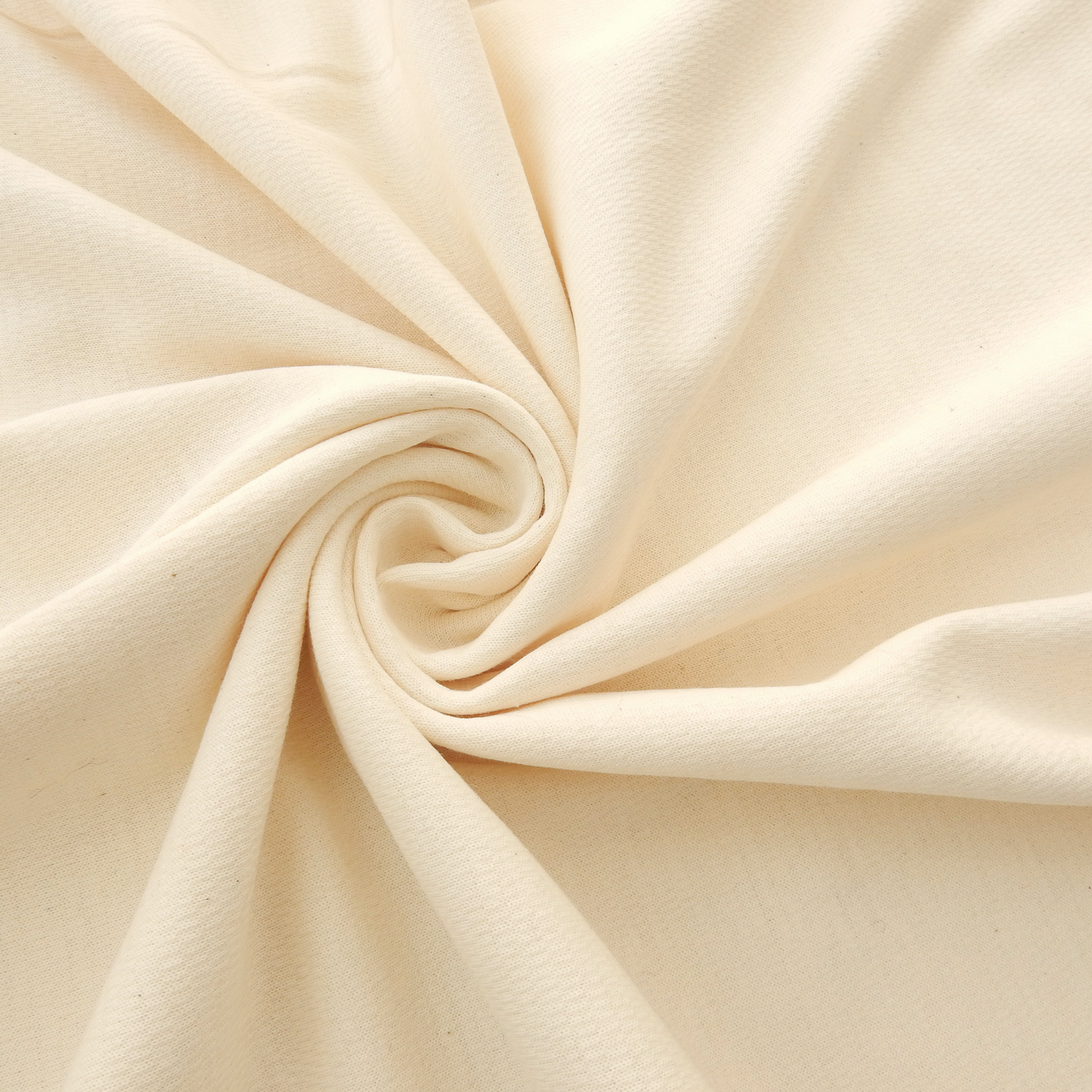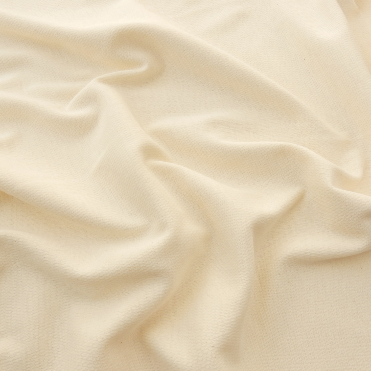 An ivory color Tubular Jersey Fabric with a subtle texture, amazing soft plush hand and a 35% widthwise stretch.