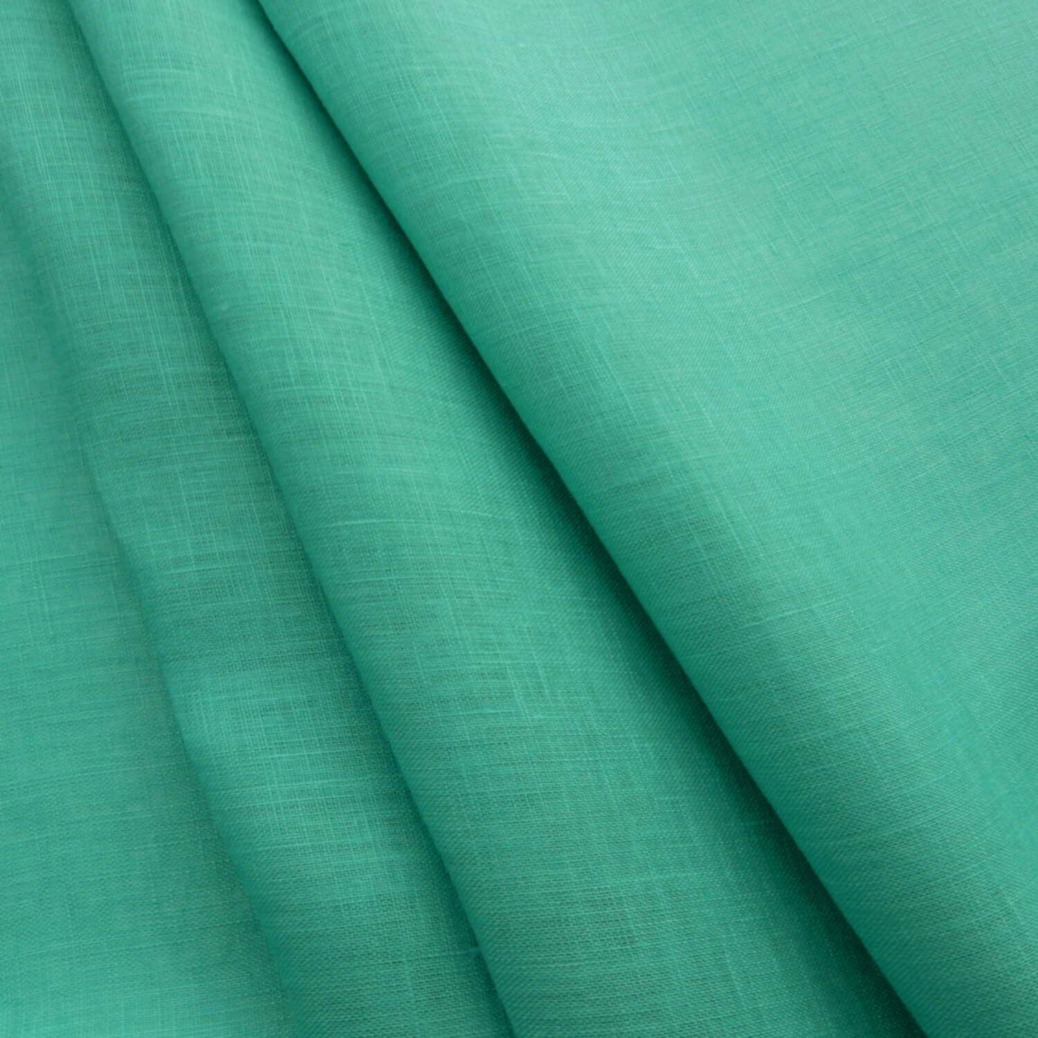 A calypso color, 4 ounce, finely woven and lightweight, semi-sheer Handkerchief Linen made from 100% French linen yarn, woven and finished in Ireland.