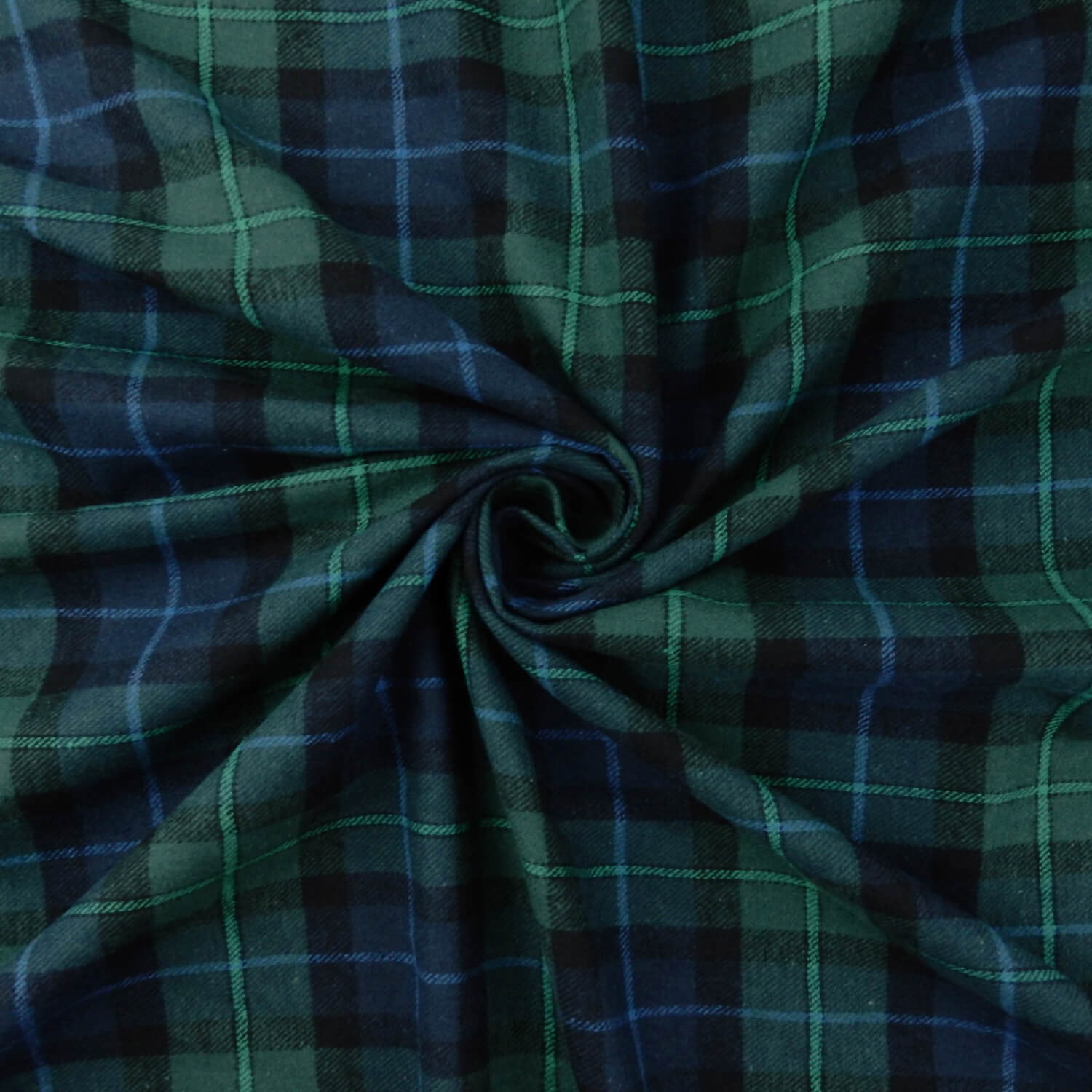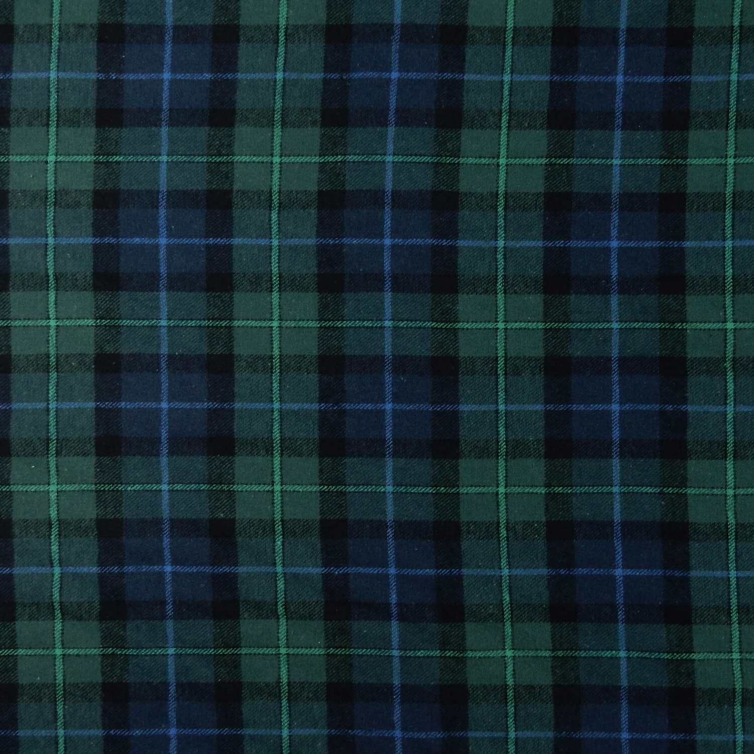 A classic soft as butter 100% Cotton Yarn Dyed Flannel Tartan Black Watch in the traditional blue, green and black colors.